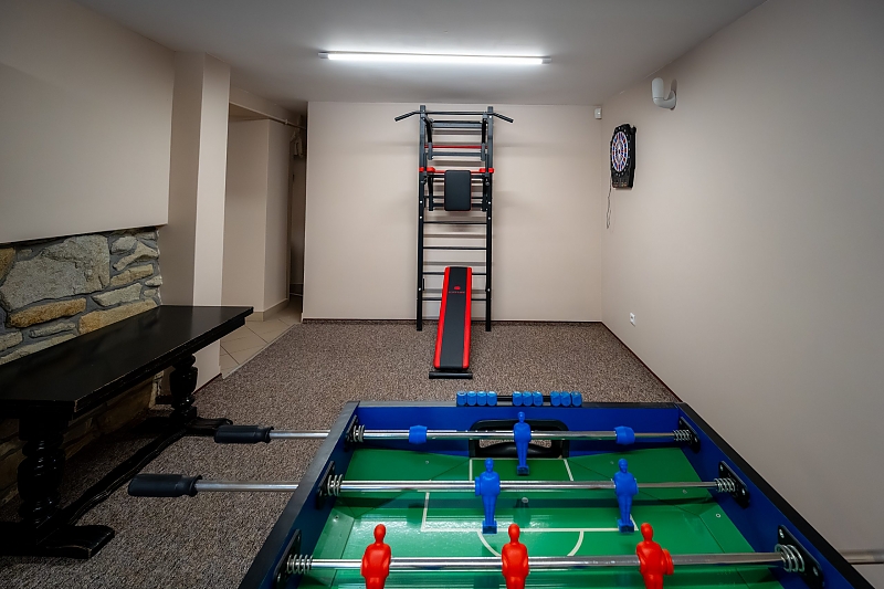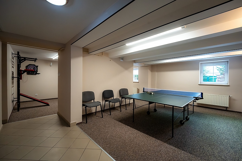 Do dyspozycji Gości jest równizeż część rekreacyjna, gdzie znajduje się stół do tenisa, piłkarzyki i darts oraz drabinka gimnastyczna.