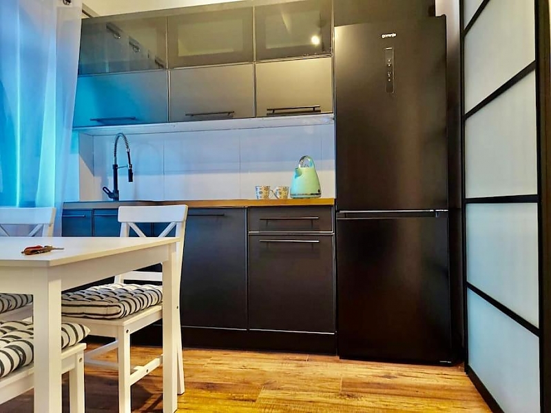 Oferta apartamentu obejmuje sypialnię (1), salon, aneks kuchenny z pełnym wyposażeniem, w tym lodówką i ekspresem do kawy, a także łazienkę (1) z prysznicem oraz bezpłatnym zestawem kosmetyków.