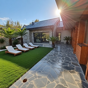 - Podgrzewanego basenu całorocznego (9 × 4 m, głębokość 1,5 m) – idealny o każdej porze roku
