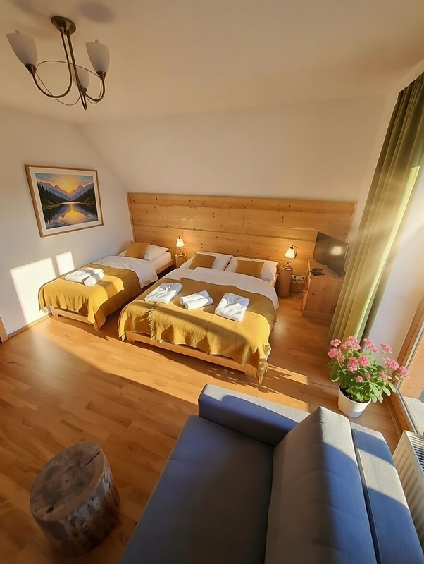 Willa Małe Alpy & SPA oferuje 8 przestronnych pokoi rodzinnych, urządzonych z myślą o wygodzie i górskim klimacie.